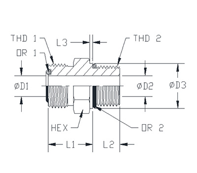 ITEM | P/N | HEX | THD 1 | THD 2 | L1 | L2 | L3 | D1 | D2 | D3 | OR 1 | OR 2 |