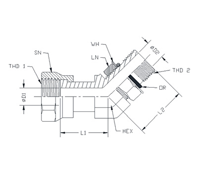 ITEM | P/N | HEX | THD 1 | THD 2 | L1 | L2 | D1 | D2 | LN | WH | OR | SN |