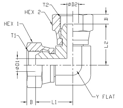 ITEM | P/N | T1 | T2 | L1 | L2 | D1 | D2 | B | HEX 1 | HEX 2 | Y FLATS |