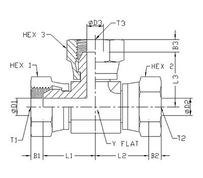 ITEM | P/N | T1 | T2 | T3 | L1 | L2 | L3 | D1 | D2 | D3 | B | HEX1 | HEX2 | HEX3 | Y FLATS |