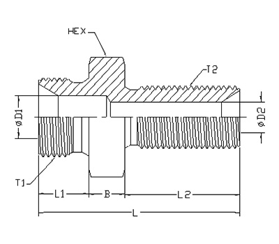 ITEM | P/N | T1 | T2 | D1 | D2 | L1 | L2 | B | L | HEX |