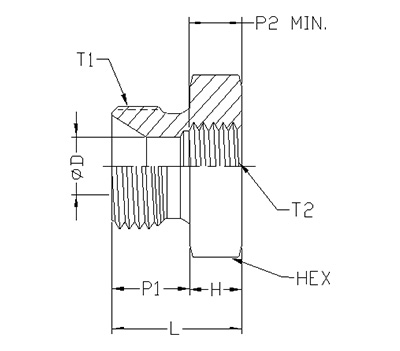 ITEM | P/N | T1 | T2 | P1 | P2 | L | D | H | HEX |