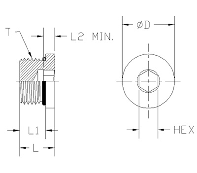 ITEM | P/N | T | L | L1 | L2 MIN. | D | HEX |